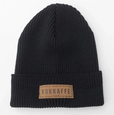 Classic rib knit beanie from the northern Sweden. Patchprint Kokkaffe for the lover of open fire coffee brew.