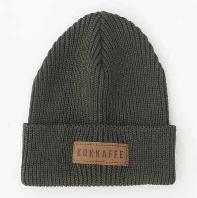 Classic rib knit beanie from the northern Sweden. Patchprint Kokkaffe for the lover of open fire coffee brew.