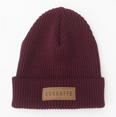 Classic rib knit beanie from the northern Sweden. Patchprint Kokkaffe for the lover of open fire coffee brew.