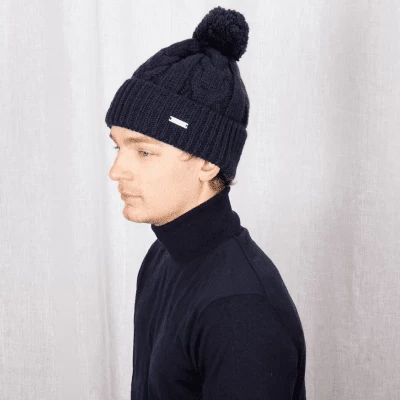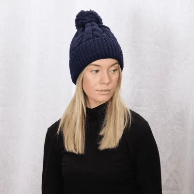 Åsarp is a chunky knitted beanie with braids and a pom on top of beanie, it also has a ribbed knitted fold up. Produced in 100% wool from Norwegian sheep. This beanie has a closed top which reduces waste and have less enviromental impact. Åsarp is a heavy beanie that is warm and comfortable. Knitted in own factory in Sätila, Sweden.