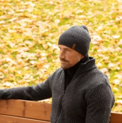 Avan Jr is a rib knitted classic beanie in woolmix with a fold-up, organic cotton yarn is used for lining inside for best possible comfort. Avan is knitted in an innovative woolmix yarn where 85% of the material is recycled. Knitted at own factory in SĂ€tila, Sweden.