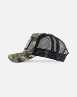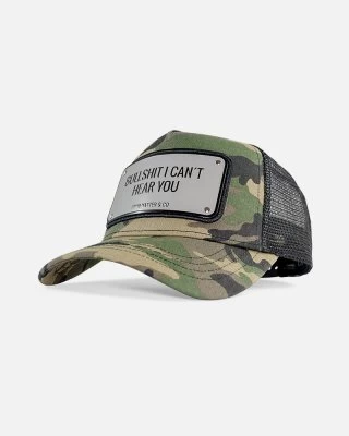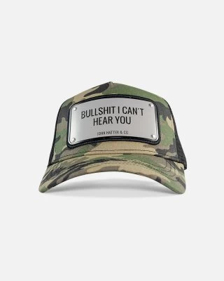 John Hatters Classic Trucker Caps are made of cotton and polyester with a printed rubber patch and snapback adjustment.