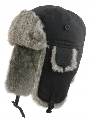 Warm trapper hat in synthetic with soft rabbit fur lining.