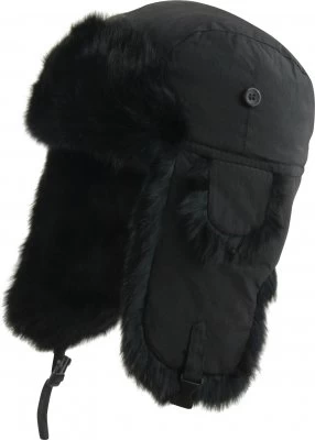 Warm trapper hat in synthetic with soft rabbit fur lining.
