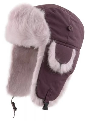 Warm trapper hat in synthetic with soft rabbit fur lining.